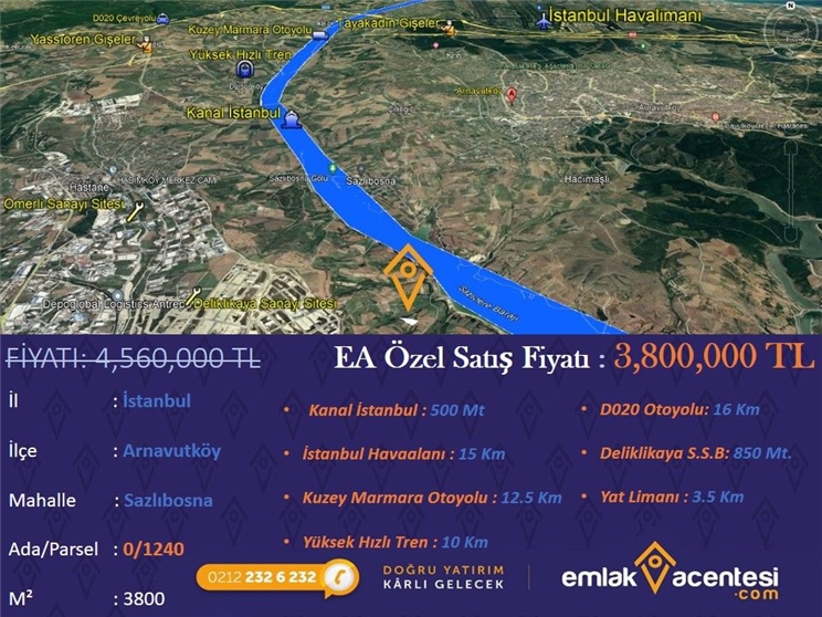 EA'DEN ARNAVUTKÖY SAZLIBOSNA'DA KANAL İSTANBUL MANZARALI SATILIK ARSA
